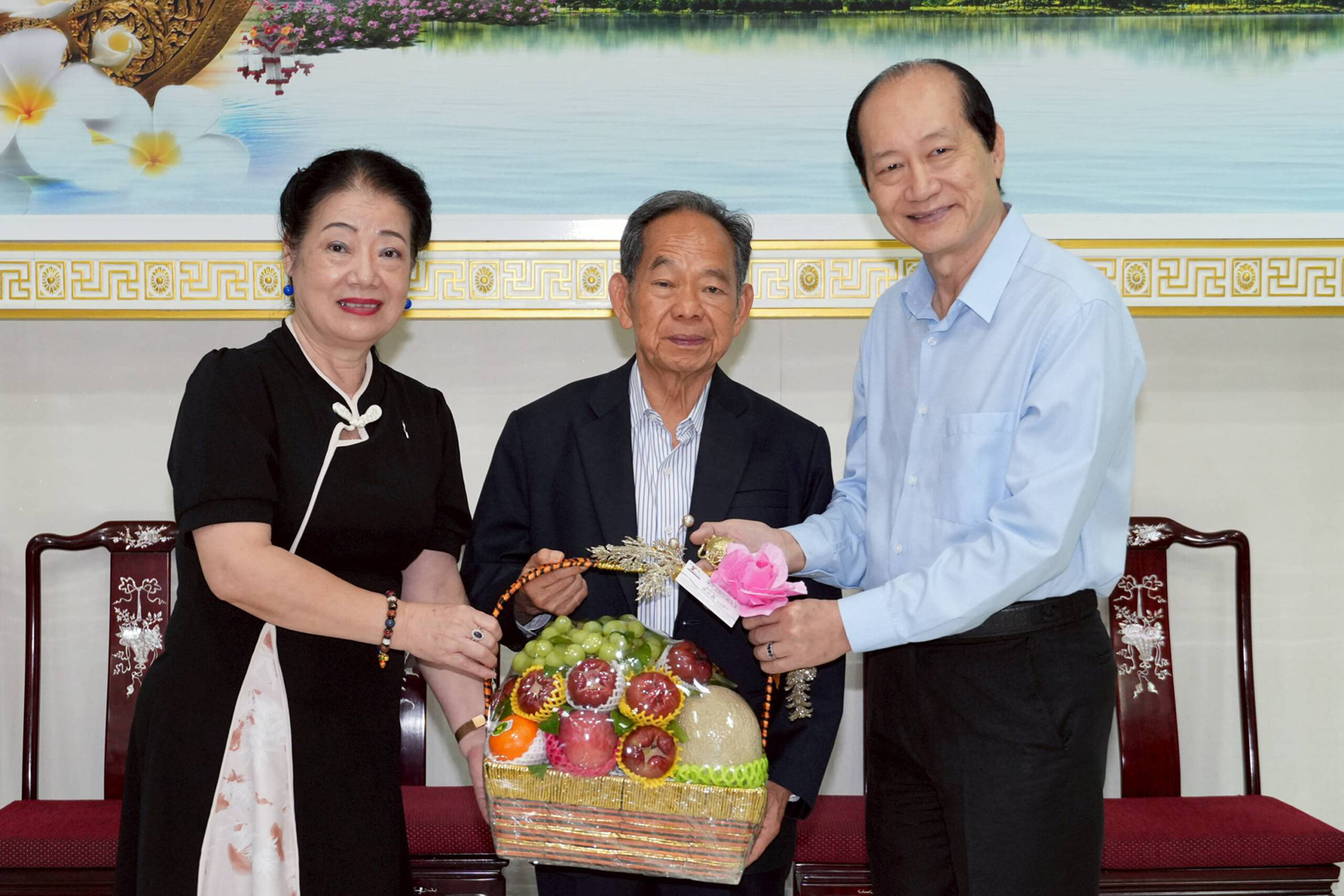 潮館醫療中心院長坤旺拉帕女士、副主席陳運金、林瑋、許馬楚雲女士等向徐惠深主席拜年