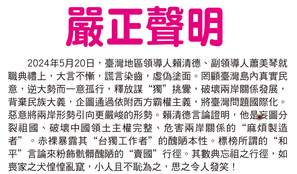 泰國潮州會館暨泰華各縣同鄉會全體同仁 強烈譴責賴清德和蕭美琴《假和平、真台獨》行徑