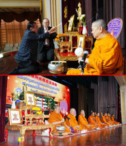 李春林参赞致祭潮馆副主席刘振禀博士 潮州会馆主席黄迨光博士主持赠经仪式 张东浩汶耶越上将挽纳叻警中将兀提蓬王金国王志民 庄荣厚陈绍扬黄汉良许家伟许镇南蒋应初萧鸿洽徐光辉 陈灿泰孙石波李振来陈鸿辉方博仁刘树光等莅临致祭