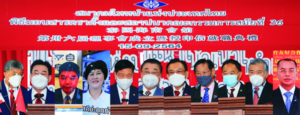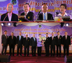 泰国潮州会馆彭世洛府分会隆重成立就职 黄迨光主席向第一届主席罗岳鸿颁授印信 总会首长陈灿泰萧俊杰锺灿峰姚楚杰徐炎光黄玉枝陈曙华 及当地侨领乡亲一千三百人出席典礼