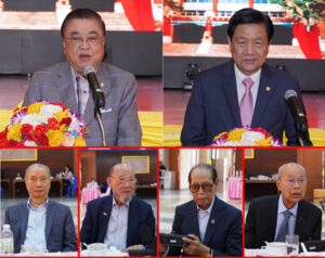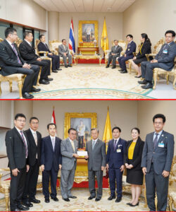 黄迨光主席率团拜访国会主席川阁下 呈献救济泰南水灾区善款八十六万铢 福建会馆侯任理事长苏承智及副理事长蔡上新、 云南会馆理事长侯永安出席献款仪式
