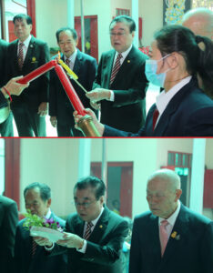 黄迨光主席率领泰国潮州会馆代表团赴彭世洛 出席揭阳会馆彭世洛分会新届理监事就职典礼 黄迨光主席向邹伟贞理事长献花并致祝贺词 萧鸿洽徐光辉陈灿泰萧俊杰等随团出席活动