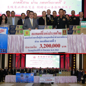 潮館捐贈500多萬銖款物救濟東北部水災災民 黃迨光主席移交款物予第二軍長唐耶中將接領 莊榮厚張朝江陳紹揚劉振稟夢莉許家偉徐惠深蔣應初蕭鴻洽陳燦泰等出席捐赠爱心善款仪式