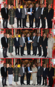 潮馆辖下嵩越路大本头公庙筹办盂兰胜会 黄迨光主席刘振禀庄荣厚分别赞助五万铢 三攀塔旺县署恭建三保公圣像获黄迨光主席捐献廿万铢 刘振禀郑永国各捐献十万铢 邱燕桂倪武龙郑永国江俊强分别捐赠款物 蔡璧煌吴金城王桂盛许木才出席捐赠仪式