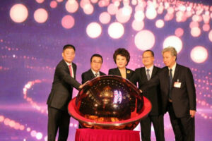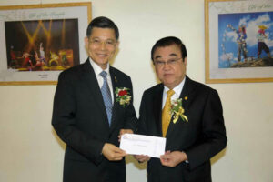 泰国潮州会馆郑名誉主席鹤楼致送大礼堂(子彬堂)装修费 赞助款泰币六百五十万铢,交予黄迨光主席接领, 并由副主席陈绍扬,许镇南,郑伟昌及其家属在场见证