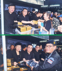 泰国潮州会馆全体执委深切缅怀普密蓬大帝 黄迨光主席率领执委赴皇家田分发黑衣食品