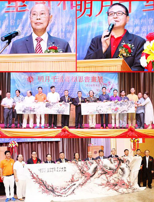 泰国潮州会馆暨各县同乡会主办华人青年商会协办传统中秋佳节「明月千里寄相思」书画展 黄迨光主席主持致词 披尼主席 陈疆参赞 陈振治主席 黄汉良主席 李桂雄会长 郑岳龙理事长等联合主持开幕剪彩礼