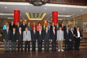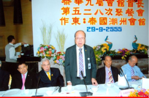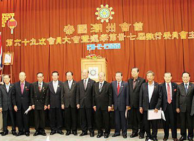 陈汉士主席主持泰国潮州会馆第六十九次常年会员大会 全体与会者一致推选 蔡汉强荣任第三十七届执委会主席 李光隆郑培民梁润潮张朝江杨亨元吴喜然 欧史里蓝健龄陈卓然苏岳章庄镇雄方炜马君楚刘锦庭陈绍扬陈振治黄汉良 吴仲昭王睦良朱春隆出席大会