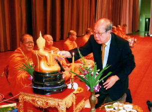 潮馆大礼堂装修后延高僧举行宗教仪式 蔡汉强主席领导潮州会馆蒸蒸日上, 会务井然有序。潮馆大礼堂重新装修焕然一新, 延高僧举行宗教仪式,永远名誉主席吴宏丰博士、李光隆先生,名誉主席姚宗侠、陈运教、许健生等参加仪式。