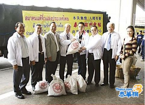 潮州会馆首长捐资850万铢赈济受灾同胞陈汉士主席蔡汉强主任及 张朝江梁润潮陈卓然苏岳章庄镇雄陈绍扬陈振治王睦良朱春隆等 向政府相关部门移交救灾物资