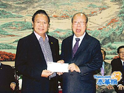 蔡汉强主席接领苏岳章副主席、徐惠深常务秘书 各呈献一百万铢善款资助教育事业