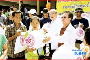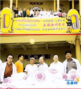 水灾无情,人间有爱,向灾区同胞奉献爱心,泰国潮州会馆第二期赈灾活动有条不紊进行中,斯次水灾使人民生命财产造成损失超乎想象。外府的灾情稍有好转,曼谷周边及曼谷部分区遭水淹浸深达1.2米,居住于此人民出入不方便,小型车辆已无法进出,生活诸多不便可想而知,抗洪救灾小组主任蔡汉强主任急灾民所急,联系泰国海军署派出军车二部(其底盘高,发动机不昜被水淹)联合赈灾。
