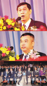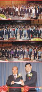 (三至五)管木大使偕夫人吴慧卿参赞,颂蓬副教授,蔡汉强主席,团长蔡少铭,胡玉麟,锺源泉,梁润潮,张朝江,陈卓然,苏岳章,陈绍扬,陈振治,吴仲昭,朱春隆,刘振禀,陈金苞,张荣炳,梦莉,黄迨光,陈万平主持揭幕剪彩礼。