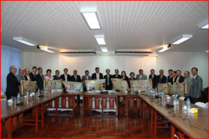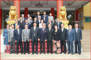 泰國潮州會館於本(六)月十一日上午11.00時,接待中國汕頭市潮汕歷史文化研究中心文化交流團,由羅仰鵬理事長暨同辦公室副主任鄭瑞國二位蒞臨訪問。是日蔡漢強主席因私務冗忙未克出席,特委任副主席黃迨光博士代為主持,在場協同接待首長有;泰國潮州會館副主席梁潤潮、蘇岳章、馬君楚、吳仲昭、張榮炳、夢莉、黃迨光,常務財政倪昌祥、蔡泰松、邱燕桂,常務稽核陳兆渭。潮安同鄉會副理事長黃水金、許金揚。泰國潮陽同鄉會副理事長馬文清。暹羅揭陽會館理事長蕭俊傑、副理事長蔡文忠。泰國澄海同鄉會理事長陳燦泰、副理事長許發琳。泰國大埔會館副理事長鄧玉清、黃欽泉。泰國豐順會館副理事長徐顯利、徐位合。泰國饒平同鄉會副理事長徐光輝。泰國惠來同鄉會理事長鄭惠中。賓主一同在潮州會館大門前合影留念,並邀請羅理事長,鄭副主任到三樓文物館及圖書館參觀。中午時分在潮州會館二樓會客廳設午宴招待。儀式開始先介紹互相認識,黃迨光副主席致歡迎詞意謂:「今天承蒙羅理事長、鄭副主任前來訪問,蔡漢強主席因私務繁忙未能親自前來接待至深歉意。我代表泰國潮州會館全體同仁特向潮汕歷史文化研究中心代表團致衷心敬意和熱烈歡迎。羅理事長曾出任汕頭市領導,政通人和,造福社會,現擔任中國汕頭市潮汕歷史文化研究中心理事長,在百忙之中特地前來泰國聯合主持僑批檔案展覽,並帶來大批有關僑批資料。潮汕文化源遠流長,歷史悠久,生為潮籍子民應共同協力弘揚,傳承潮汕傳統優良文化。