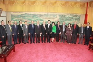 3、(左起)刘振禀、吴仲昭、陈振治、马君楚、陈卓然、张朝江、李光隆、蔡汉强、宁赋魁大使伉俪、梁润潮、锺源泉、梦莉、蓝健龄、方炜、张益明在会客厅一同合影