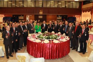 7、主席台前宁赋魁大使伉俪,张益明公参,高振廷参赞兼总领事;泰国潮州会馆永远名誉主席李光隆、陈汉士,荣誉主席锺源泉,名誉主席姚宗侠、陈运教、蓝健龄,副主席梁润潮、张朝江、陈卓然、苏岳章等举杯互祝时影。