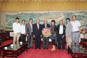 下午一时许,韩宗渭会长一行抵达潮馆时,受到会馆主席蔡汉强、副主席张朝江、永远名誉顾问张荣炳等的热情接待。在会客厅,韩会长向大家介绍了随行人员,并介绍了湖北乡亲在泰国的状况。蔡汉强主席与韩会长深入交流了海外华人华侨在泰国的情况,张朝江副主席也发表了个人见解,谈论了新加坡、马来西亚、印尼等地的海外华人华侨情况。大家从经济、文化、教育等方面,都交换了彼此的看法,希望能有互动、交流的项目。蔡主席提出,希望能在教育方面多加交流合作。发展属下的学校,一直是蔡主席牵挂在心头的工作重任。