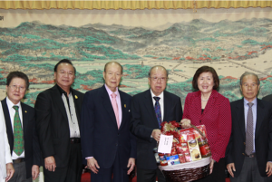 万紫千红春光媚,潮桂一家情谊深。2014年2月11日(星期二)上午11时,泰国广西总会主席李铭如女士率领名誉主席胡金生,副主席梁忠翥、张韵清,青年团副团长叶康卫、彭德联,妇女会副主任彭月英,副总干事黄碧华一行携礼品篮向泰国潮州会馆蔡汉强主席拜年,抵达时,获蔡汉强主席偕副主席张朝江、方炜、刘振禀、陈万平及执委杨荣丰,总干事王增辉、张柱热情迎接,宾主进行茶叙座谈,亲切愉快。中午,蔡汉强主席假座泰京石龙军路阿一鲍鱼酒楼设宴招待李铭如主席一行,藉申情谊。