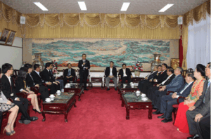 新加坡潮州八邑會館為籌辦“第八屆國際潮青聯誼年會”,由大會籌委會顧問吳南祥、主席陳輝明率領訪問團一行十二人,於 2014年7月26日(星期六)下午五時蒞臨泰國潮州會館訪問聯誼,抵達時,受到潮館副主席陳紹揚、陳金苞、黃迨光、陳萬平,常務秘書劉秉青、李桂雄、鄭偉昌、許鎮南、蕭漢銘、鄭 惠中、蕭俊傑,常務財政邱燕桂,執委張創標、廖令金;總幹事張柱,副總幹事葉碧英等熱情迎接。