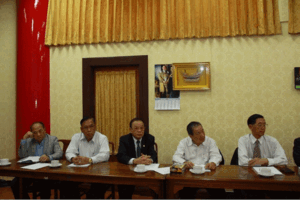 出席座谈会首长有:泰国潮州会馆主席蔡汉强,副主席吴仲昭、王睦良、陈万平,常务秘书许家伟、刘秉青、徐惠深、蔡华民、郑伟昌、李振钦、张汉辉、萧鸿洽、徐光辉、陈灿泰、郑惠中、萧俊杰、郑岳龙,常务稽核陈兆渭以及泰国潮安同乡会代理??事长何棫光,泰国丰顺会馆主席胡惠南。
