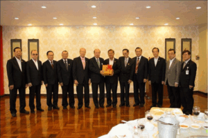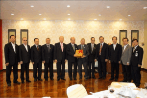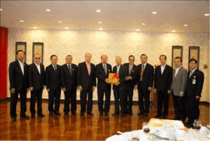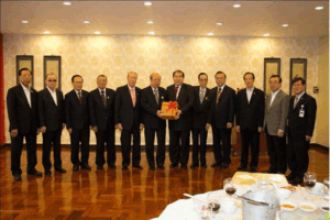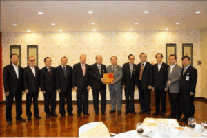 (二) 蔡汉强主席颁赠珍贵特辑予名誉主席马文清,与潮馆副主席梁润潮、张朝江、苏岳章、陈绍扬、王睦良、朱春隆、刘振禀、张荣炳、黄迨光、陈万平合影。