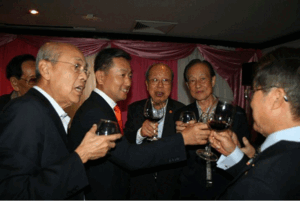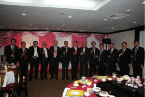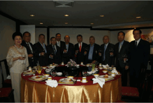 (五) 左起:首长邱燕桂,何棫光,李振钦,萧俊杰,朱伟东参赞,蔡汉强主席,张益明公使,张炳华,萧汉铭,梁金强,张汉辉席间合影。