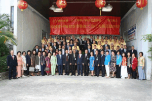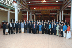 (七) 蔡汉强主席伉俪暨代表团首长成员与方志雄主席在合艾潮州会馆公祠合影。