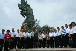(八) 蔡汉强主席伉俪,首长马文清,王志民,梁润潮,徐光辉,萧俊杰,李鉴川,吴禹德,王向荣,蔡衍孝,马逸群,廖翠珍,马永定,金美丽,黄财振等在合艾龙雕像前合影。