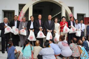 蔡漢強主席伉儷暨諸副主席,常執委共同主持濟陽發放賑物