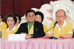 12月13日上午,蔡漢強主席親率慶賀團首長一行,與春蓬府府尹翁詩里閣下及諸長官,陳秋井主席及分會諸首長等,驅車赴巴籌縣,頒發一千份,總值八十萬銖食物用品,救濟當地水災民眾,以幫助他們戰勝災害,重建幸福家園。頒賑現場次序井然,場面感人。翁詩里府尹代表春蓬府全體官民,衷心感謝泰國潮州會館蔡漢強主席暨全體常執委仁慈博愛精神善舉,祝願潮館會務日進千里,更上一層樓!