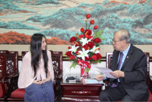 圖:(上)陳家寶採訪泰國潮州會館主席蔡漢強。