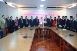 泰國潮州會館主席蔡漢強先生率各位首長、執委,於2015年5月1日(國際勞動節)中午,在潮館二樓會議廳迎接中國廣東省潮商會會長周奕豐先生率領的企業家代表團一行,賓主親切座談,鄉音滿堂,親情洋溢。
