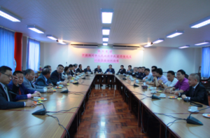 泰國潮州會館主席蔡漢強先生偕副主席、常執委及各縣同鄉會首長,於2015年5月29日下午,在潮館二樓會議廳迎接中國潮州市人民政府市長盧淳傑閣下率領的經貿代表團一行蒞臨訪問,賓主進行親切座談交流,鄉誼濃郁,親情洋溢。