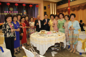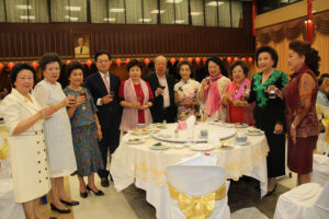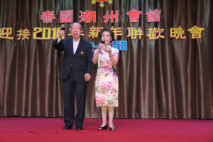 東道主蔡漢強主席偕夫人蔡馬楚娟向全場領導嘉賓總敬酒祝福,贈送新年禮物;逐桌敬酒互賀新年健康快樂并合影留念,展現新時代泰華僑領精神風范。榮譽主席王金國;副主席劉振稟,廖漢明;常務秘書楊潮雄也各自在迎新年聯歡晚會中分贈精美掛曆、糖果予在場領導嘉賓及執委們,增添晚會歡樂愉快氣氛,至晚九時多盡歡圓滿結束。
