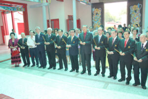 圖:(上)泰國潮州會館黃迨光主席主持明燭禮。(中)潮館主席黃迨光博士率領副主席莊鎮雄、吳仲昭及常執委蔣應初,楊潮雄,蕭俊傑,鄭岳龍,李創福,蔡文忠,林連修,林松源,陳文偉,金美麗,蔡衍孝祭拜天地父母神位。(下)主祭黃迨光主席,陪祭莊鎮雄副主席,吳仲昭副主席暨常執委等公祭炎帝、黃帝及先僑諸公神位場面。