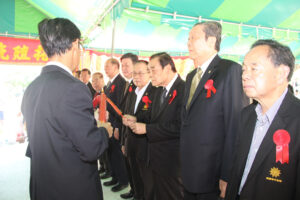 (一)潮館副主席兼山莊管委會主任吳仲昭主持明燭禮,旁立潮館副主席莊鎮雄、陳紹揚。(二)主祭吳仲昭,陪祭莊鎮雄、陳紹揚、徐惠深、許鎮南、陸少濱、馬文北、蕭俊傑、李振來、張源晉、鄭惠中、馬龍輝、李振欽、楊潮雄、蕭鴻洽、徐金亮、馬永綏、陳文偉、陳哲思、吳金城、張國勝及與祭等晉香獻花祭拜。(三)吳仲昭副主席率領諸位首長、代表祭拜土地神。