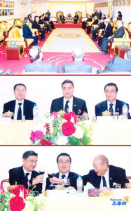 | 图:(一)潮馆主席黄迨光博士、副主席张朝江、陈绍扬、徐惠深暨诸首长与民主党魁阿披实,李天文博士一行在泰国潮州会馆前合影。(二)黄迨光主席和前国务院总理阿披实、前国务院事务部长乌伊拉猜(李天文博士)翁抑副党魁、前女民代庄曼,前京都市长秘书吉(蔡秋明)徐惠深副主席,秘书萧鸿洽,锺灿峰博士,财政徐炎光,吴金城社长,黄迨光主席办公厅合影留念。(三)右:黄迨光主席致欢迎词,左:阿披实党魁。(四)在堂皇潮镇厅欢迎阿披实党魁等人盛况。(五)阿披实前总理在宴席上致词,右者:黄迨光主席,左者:前国务院事务部长威猜(李天文博士)。(六)正副主席黄迨光博士,张朝江举杯向阿披实前总理敬酒时影。 |