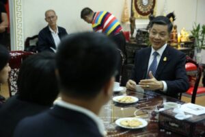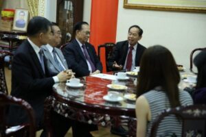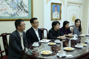 2017年6月5日下午五时,香港私人银行赵汝翔副总经理,香港私人银行钟育妙主管,香港私人银行陈蕙箐副董事,泰国中国银行刘桂珍行长助理,泰国中国银行个人金融部黄绍文总经理一行前往拜访泰国潮州会馆,受到黄迨光主席、陈绍扬副主席、徐惠深副主席、徐光辉常务秘书等的热烈欢迎,双方进行友好座谈交流,香港私人银行此行来泰国主要了解泰国银行界的运作方式,泰国华商,老一辈华侨在融资、保险两个方面的需求,香港方可以提供服务给予满足。