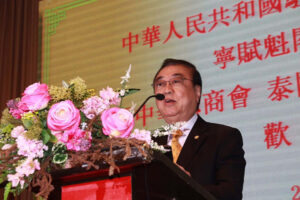 首先,让我代表泰国中华总商会,泰国潮州会馆及泰华各社团向宁赋魁大使暨夫人初庆玲女士表致崇高敬意!