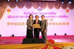 泰国前国会主席邬泰.屏知春,中华总商会主席陈振治,潮馆主席黄迨光博士,该会永远名誉理事长吴多禄,陈修炳在典礼上和沈晓明省长,李春林参赞兼总领事见证卅三届理事长陈文秋将印信移交予卅四届理事长冯尔真接领,并分别致词,归纳为,泰国海南会馆历史悠久,是泰华社团的重要成员之一,在历届理事长领导下,为泰国海南乡亲服务,与泰华社团密切合作,为国家经济繁荣,社会慈善福利事业作出良多贡献,深得社会各界人士赞扬。