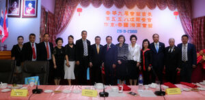 图一:潮州会馆主席黄迨光博士、海南会馆理事长冯尔真、客家总会代理事长吴志雄、广肇会馆理事长何国忠、福建会馆代理事长蔡孝兴、江浙会馆代理事长陈淑卿、台湾会馆主席张文平、云南会馆理事长侯永安、广西总会主席李铭如出席餐会。