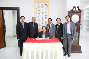 图三,四:澳洲潮州同乡会主席周光明参观潮馆文物馆并签名留念。