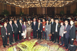 图十:泰国潮州会馆代表团与本届年会主席曾国奎,在欢迎宴会上合影。