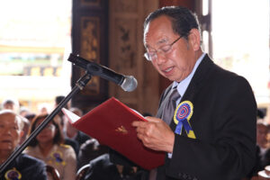 图六:护法执行主席徐惠深以国语禀报举办尊仰法会的宗旨。