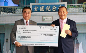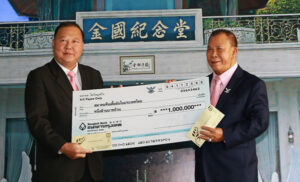 图六:王金国董事长赞助泰国潮州会馆一百万铢,由黄迨光主席接领。