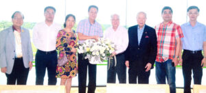 上午十一时,张东浩参赞、泰国潮州会馆主席黄迨光博士、中总副主席张朝江、泰国马氏宗亲总会理事长马灿伟、侨领林桂馥、卢田胜、萧鸿洽、京华中原联合日报社长吴金城、五洲检验公司总经理肖正国偕夫人程小明、刘军明、江涌、包枫献上寿桃鲜花,祝李景河董事长福如苍松千古茂、寿似翠柏万年青。