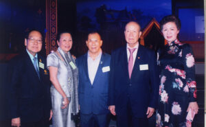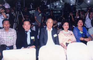 图九:泰国文化部长威拉·洛朴乍纳叻阁下之代表、文化部长顾问蓬萨·盛讪阁下,黄迨光主席,荣誉主席王金国吴金凤伉俪,张朝江副主席,刘振禀副主席,廖汉明副主席,侯映辉,吴金城出席欣赏演出。
