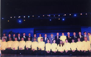 图十四:演出圆满成功,黄迨光主席及王金国,张朝江,陈绍扬,刘振禀,张荣炳,廖汉明,徐惠深,许镇南,陆少滨,陈灿泰,萧俊杰,吴桂德,吴金城登台与部份潮剧演员合影。
