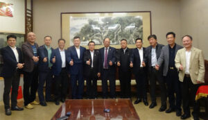 圖一:華文聯行董事長侯陸勳、華文傳播總經理鄞姜、華文地產總經理黃小峰等管理層與泰國潮州會館訪問團黃迨光主席、許鎮南副主席、蕭俊傑常務秘書、羅煒達常務稽核、黃玉枝執委一行舉行會談。
