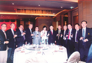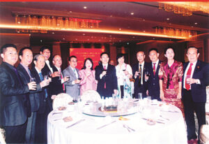 图五:吕健大使阁下暨夫人潘鹏参赞,陈振治主席,黄迨光主席,陈汉涛,陈汉忠,蔡广盛,陈明彩,刘树光,李鉴川,冯裕德,刘木奇,吴金城社长等互相敬酒。